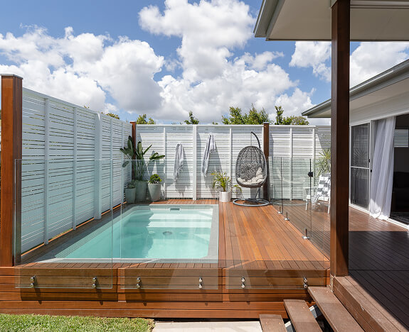 - Studio Plungie Pool (highly engineered concrete shell, eco finish interior, LED lights, Poolrite skimmer, pre-engineered specifications, 10-year structural warranty)