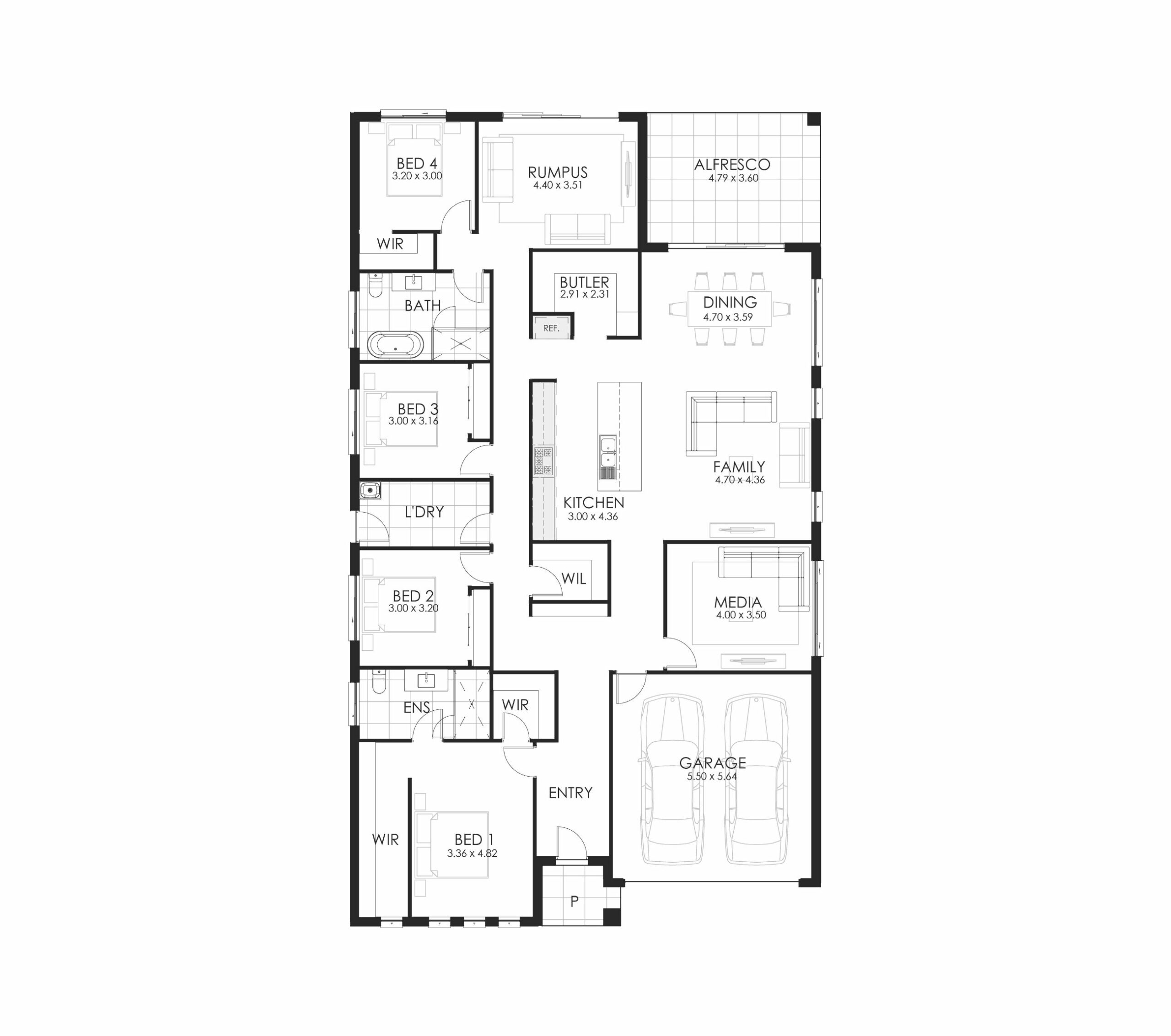Versatile Living Areas: Designed to accommodate various family activities, the Avoca includes multiple living spaces such as a large open-plan family and dining area, a separate media room, and a rumpus room. These spaces are perfect for entertaining, relaxing, and spending quality time with family.