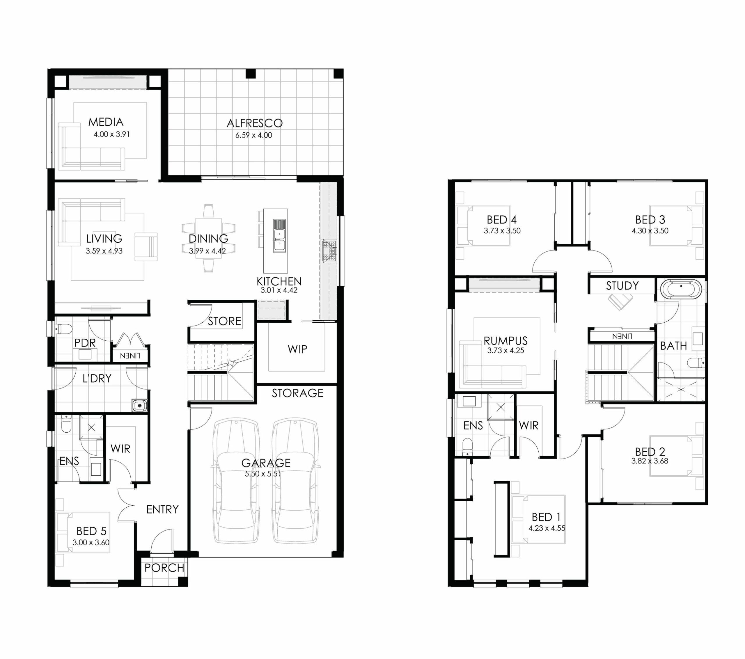 - Versatile Living Areas: With multiple living spaces, including a media room, rumpus room, and a separate study, there’s plenty of space for relaxation, work, and entertainment. The open-plan living and dining areas connect seamlessly to the alfresco, creating a bright and airy atmosphere.