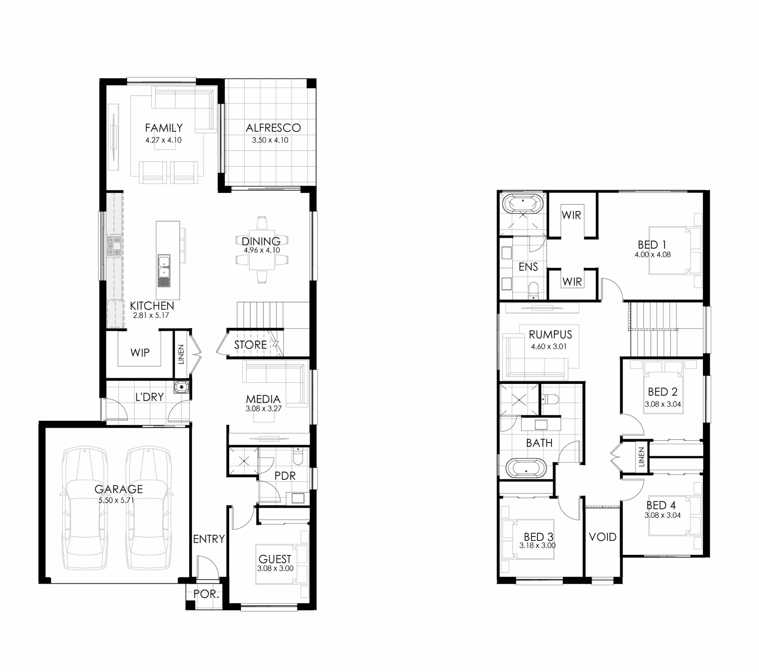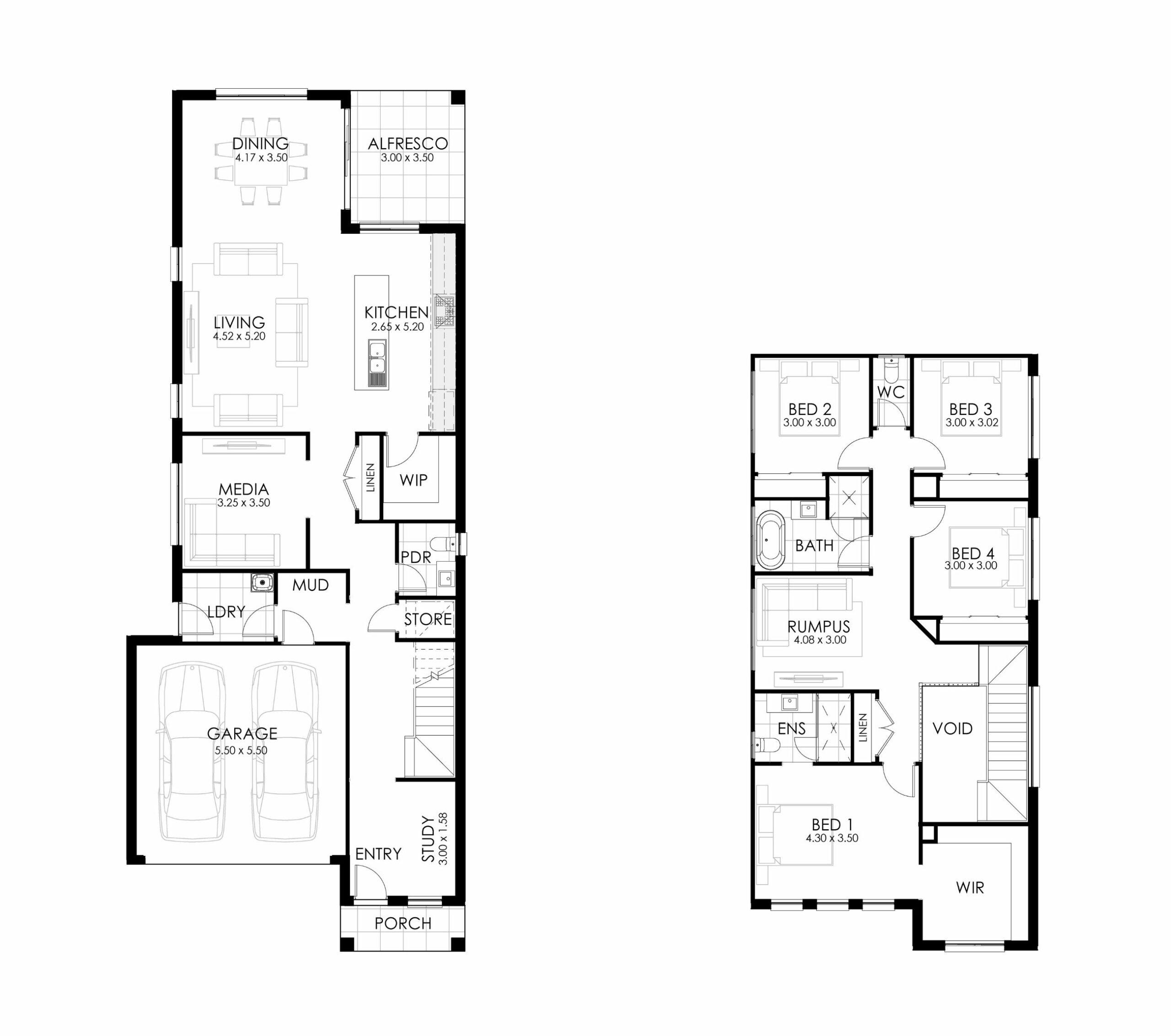 31 Squares – 5 Bedrooms + Guest Suite: The largest Brooklyn design, this 31 square option includes a guest bedroom downstairs, perfect for visitors or multi-generational living. The home features a stunning void upon entry, filling the space with natural light, and a separate media room for entertainment. The additional bedrooms also include walk-in robes for extra storage.