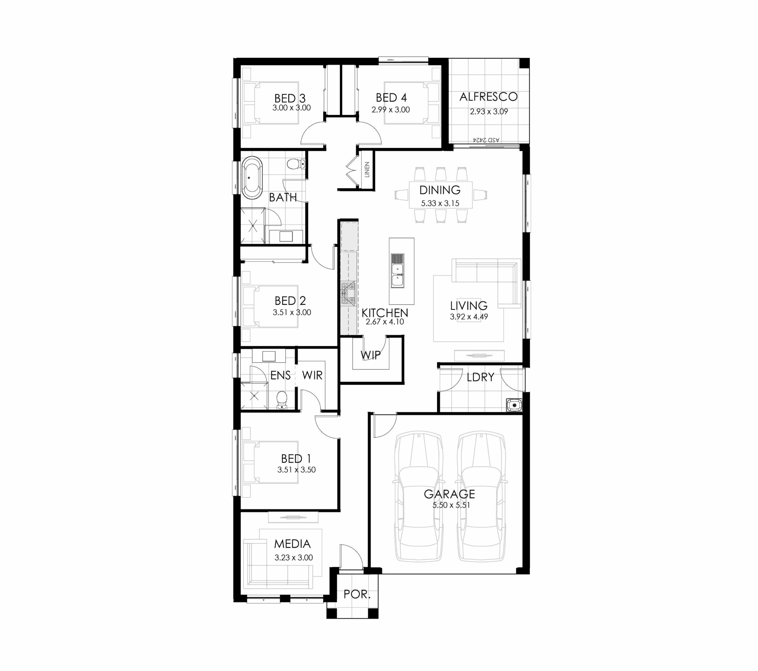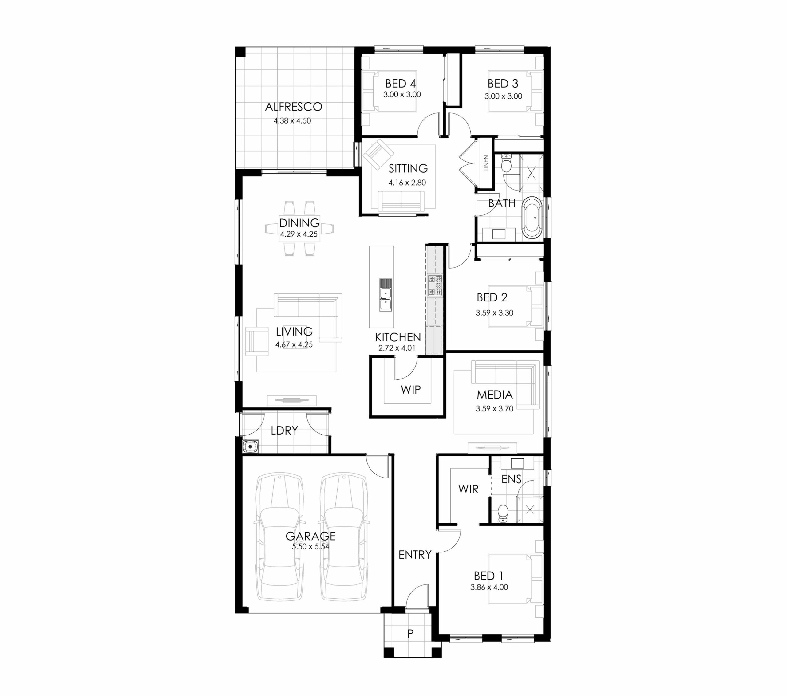 Spacious Bedrooms: The Cambridge features four generously sized bedrooms, offering plenty of space for the entire family. The main suite includes a walk-in robe and a luxurious ensuite, creating a private retreat for parents. The additional bedrooms are equipped with built-in robes.