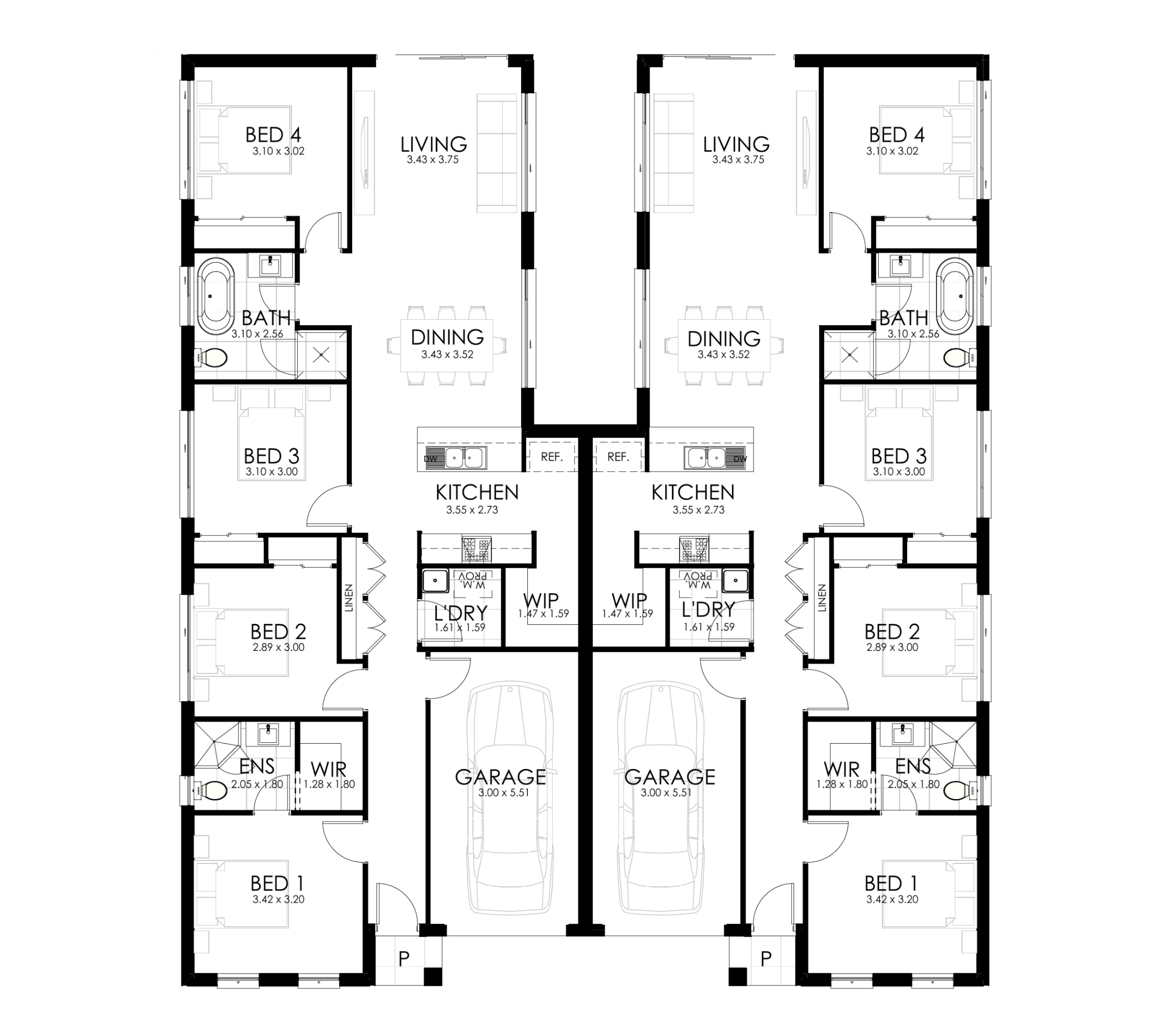Introducing the Monte Carlo, a contemporary single-storey duplex that raises the bar on four-bedroom dual-occupancy living. Designed for growing families, savvy investors, and those looking to make the most of their land, the Monte Carlo offers genuine space and a considered layout across every room — without the footprint of a double storey home.